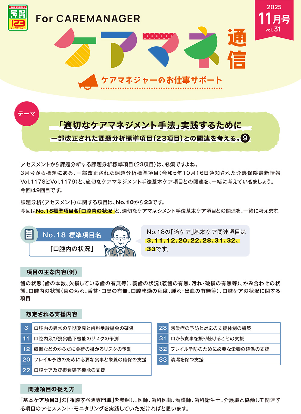 ケアマネジャーのお仕事サポート「ケアマネ通信」2025年11月号のご紹介です。