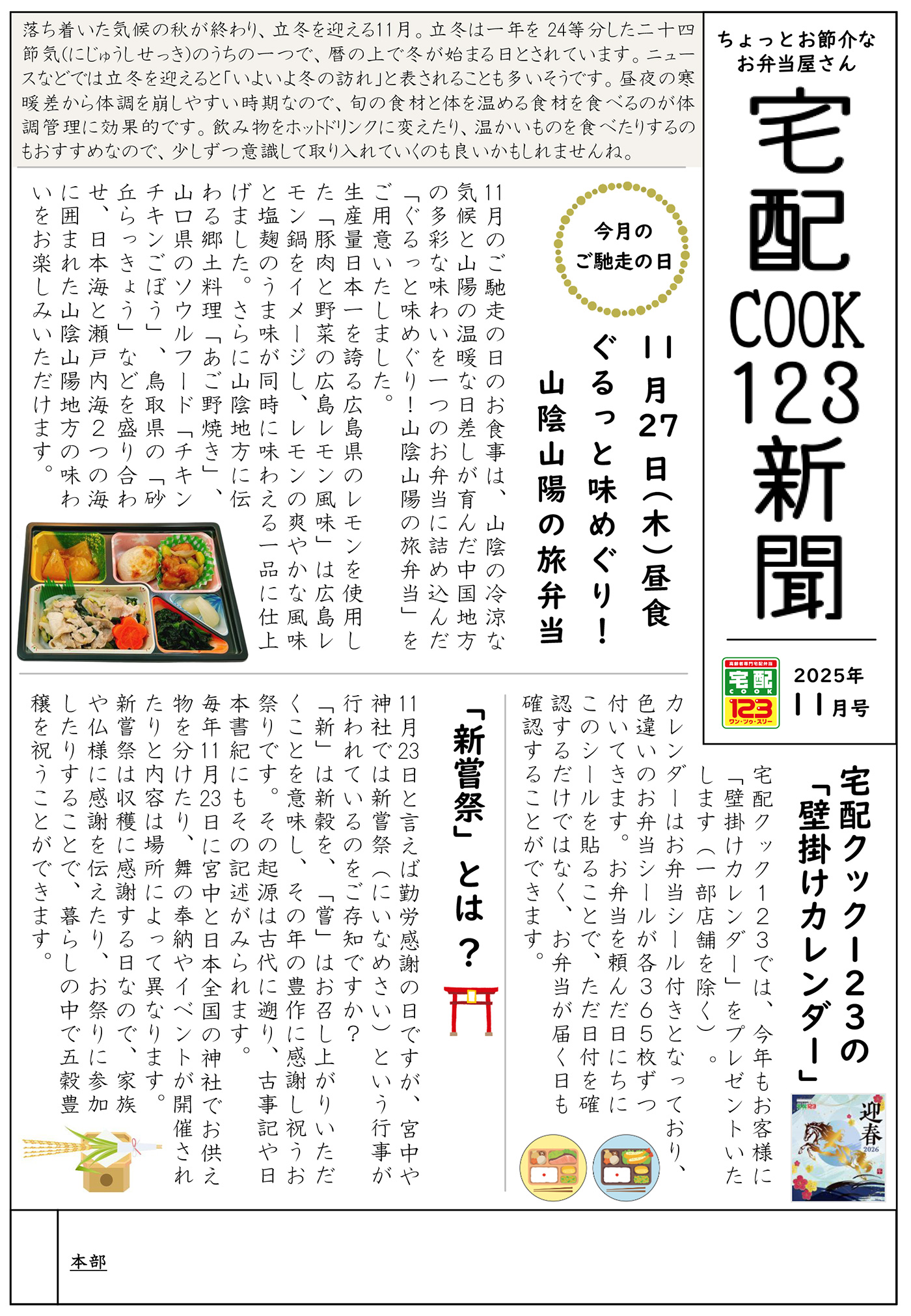 月刊 「宅配COOK123新聞」 2025年11月号のご紹介です。