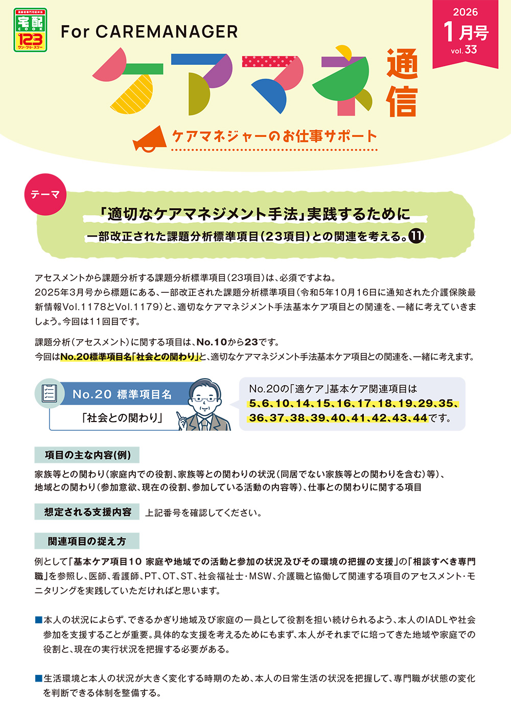 ケアマネジャーのお仕事サポート「ケアマネ通信」2026年1月号のご紹介です。