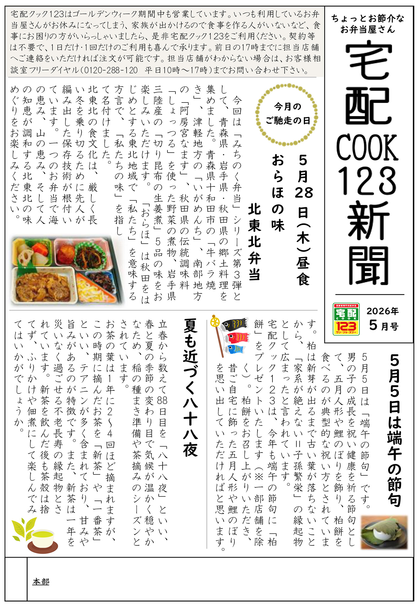 月刊 「宅配COOK123新聞」 2026年5月号のご紹介です。