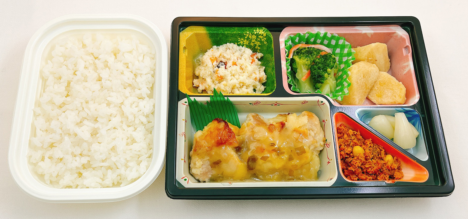 今月のご馳走の日は、米子市でフレイル予防を目的に産官学協働で組織された『フレ飯プロジェクト』と共同開発した「米子生き活き フレ飯弁当」をご用意しました。