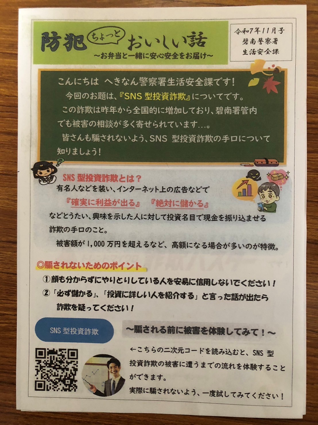 毎月、碧南市のご利用者さまへ防犯チラシを配布し、
